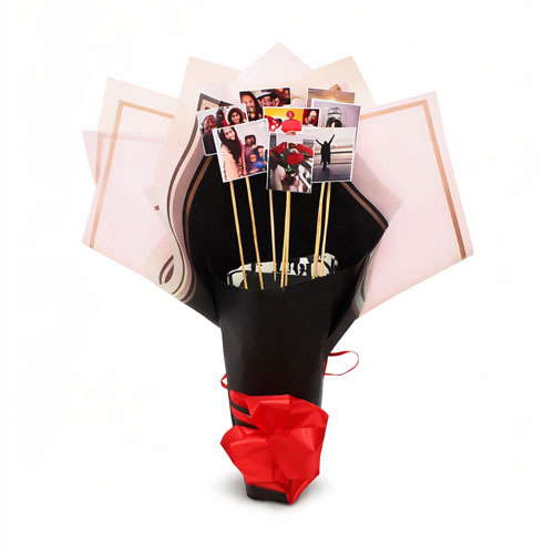 One of the most beautiful aspects of this bouquet is its personal touch. Instead of giving ordinary flowers, you present a bouquet that carries special photos and delicious chocolates together. The photos represent memorable moments, while the chocolates add a delightful surprise that makes the gift even more exciting.
